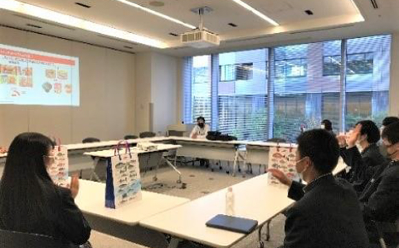 同校では、生徒が企業訪問を通じ仕事の役割、やりがいを理解することを目的としたキャリア教育活動が行われており、当社への訪問は4回目となります。当日は、当社経営企画部の3名が会社概要、SDGsに関する取り組みについて対面で授業を行いました。質疑応答では仕事や商品などを含め幅広い分野で質問を行うなど、意欲的に授業に参加していただきました。