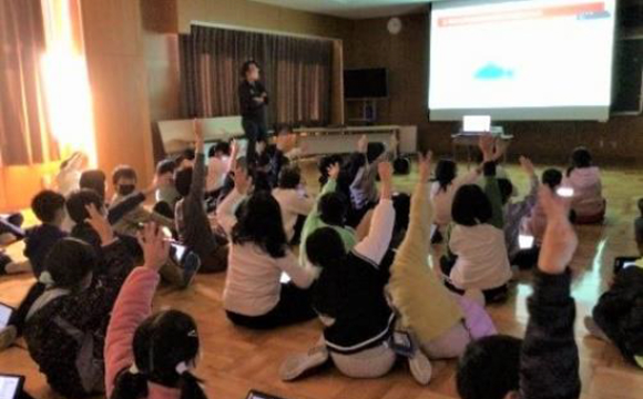 同校では、授業の中で企業のSDGsに関する取り組みについて学んでいます。当日は、当社経営企画部の2名がSDGs目標14「海の豊かさを守ろう」に関する当社の取り組みについて授業を行い、生徒は熱心に聴いていました。質疑応答では活発に意見交換が行われ、良い交流の場となりました。