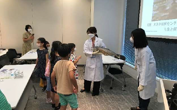 豊洲本社にて通算8 回目の開催となる夏休みの特別企画「理科実験教室」を実施し、小学生とその保護者を対象にサケの一生を学ぶ授業と、DNAを抽出する実験を行いました。