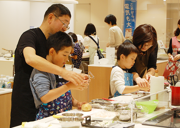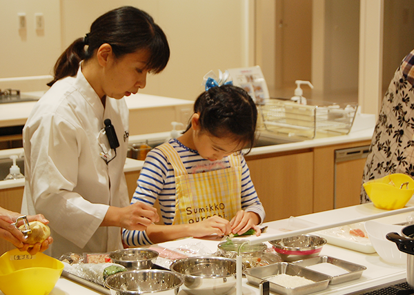 もっと多くの方々に魚食の楽しさ、おいしさを知っていただき、健康な食生活に役立てていただけることを目的に昨年から開催している料理教室です。スーパーやお魚屋さんで手軽に購入できる「エビ」「シシャモ」「タラコ」を使用して各地の有名シェフや料理研究家が今回のために自ら作ったオリジナルレシピを紹介するお弁当料理教室を、7月の名古屋を皮切りに、金沢、そして大阪、広島にて開催いたします。 今回の大阪は、ごちそうプロデューサー広里貴子先生のオリジナルレシピをご紹介いたしました。先生自らがデモンストレーションを行った後、早速親子で協力して調理実習に入りました。なお当日のメイン食材であるエビ、シシャモ、タラコ、はマルハニチロの商品を使用いたしました。