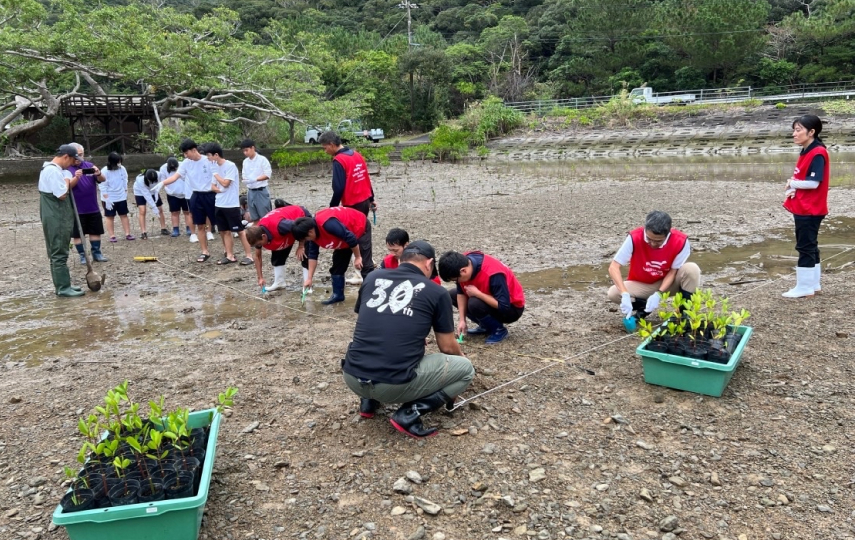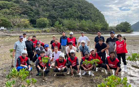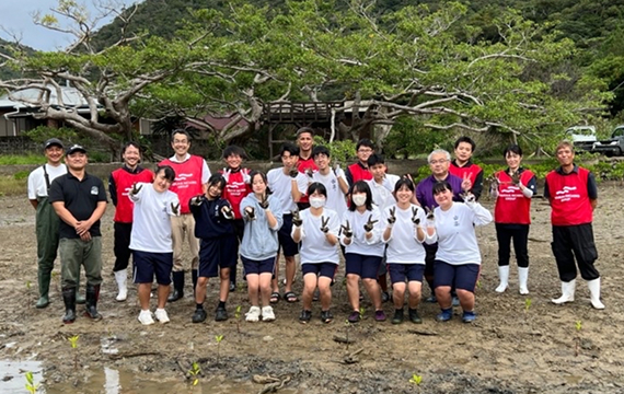 2年目となる奄美大島でのマングローブ植栽活動。2日間にわたり、地域の方々と協力し、瀬戸内町諸鈍地区においてオヒルギの苗木を植栽しました。前年度に植えた苗木の成長も確認でき、継続的な活動の成果を実感しました。